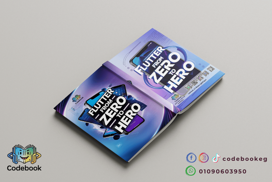 - كتاب Flutter – دليلك العملي لتطبيق المفاهيم اللي اتعلمتها في Dart وإنشاء تطبيقات موبايل حقيقية بتشتغل على Android وiOS.