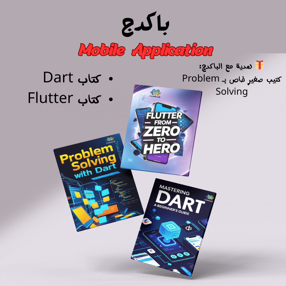 - كتاب Dart – تتعلم فيه أساسيات البرمجة بلغة Dart من الصفر، مع شرح كل المفاهيم اللي هتحتاجها قبل ما تبدأ Flutter.