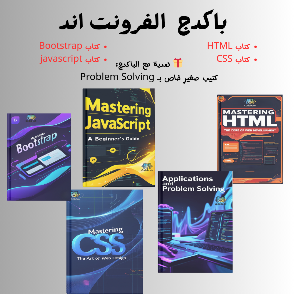 احصل على مجموعة كتب متكاملة لتعلم HTML، CSS، Bootstrap، وJavaScript، بالإضافة إلى كتيب تطبيقي يساعدك على حل المشاكل العملية! مثالية للمبتدئين والمحترفين اللي عايزين يرفعوا مستوى مهاراتهم.
